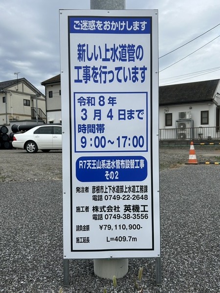 令和7年度 第1009-4010号 R7天王山系送水管布設替工事(その2)【元請工事】 請負金額 7千911万円 現在施工中